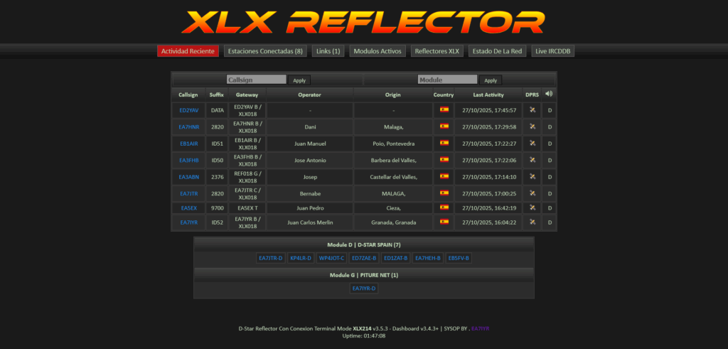 ** DASHBOARD Ahora Con SSL : https://xlx214.xreflector.es/ **